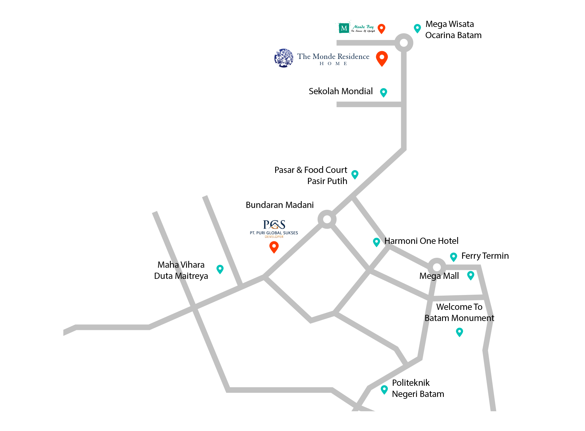 The Monde Residence diluncurkan pada Februari 2016, berlokasi di Pasir Putih - Batam Center dengan luas tanah 47.000 m². Dibangun dengan total 247 unit dengan tipe: